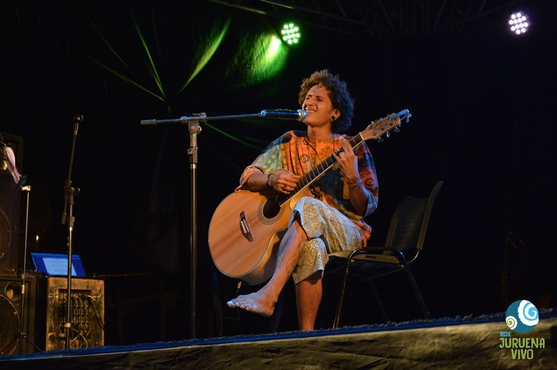 “Juruena caminho dos peixes/ Juruena caminho dos ventos/ Juruena caminho dos povos da Amazônia”, cantou Marcelo Manhuari Munduruku, que com este refrão contagiante e uma letra que levou parte do público às lágrimas, venceu o festival. “Desde criança eu cresci à beira do rio. Tenho intimidade com os temas que cantei. Aí foi só transformar os sentimentos em palavras e as palavras em poesia”, diz o autor.