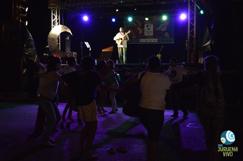 Juína, MT – Nem mesmo a chuva de invernada que surpreendeu quem estava no noroeste de Mato Grosso em pleno mês de outubro tirou o brilho e a emoção do II Festival Juruena Vivo. O evento, promovido pela Rede Juruena Vivo e pela Secretaria Municipal de Educação e Cultura de Juína com apoio de diversos parceiros locais levou à cidade importantes reflexões sobre o destino da sub-bacia do rio Juruena – ameaçada por atividades predatórias e a previsão da presença de mais de 102 hidrelétricas, entre as planejadas, em construção e as já em operação. Quem quer ver esta região íntegra e sadia no futuro optou por tocar os corações por meio da cultura. E o Juruena virou música.
